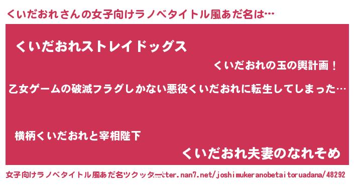 | ヒーロー風カッコイイあだ名 | 『仮面クイダー』『究極戦士クイダオレ』 |