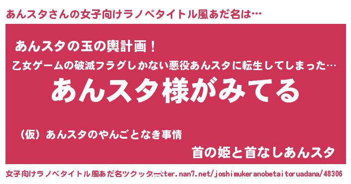 | 男性向けラノベタイトル風あだ名 | 『あんスタの嫁は女の子じゃないと思った?』 |