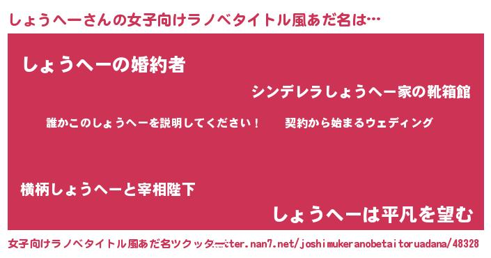 | 男性向けラノベタイトル風あだ名 | 『ショウヘーアートオンライン』 |