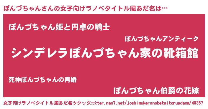 | 胡散臭い通販商品みたいなあだ名 | 『必ず成功するブレスレット…その名も「ぽんづちゃん」』 |