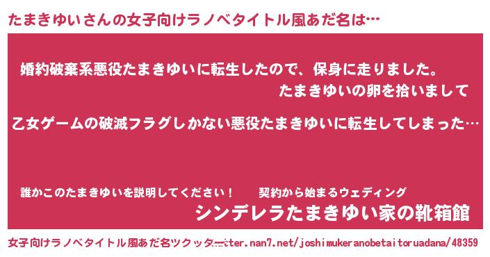 | 男性向けラノベタイトル風あだ名 | 『魔弾の王とたまきゆい』 |
