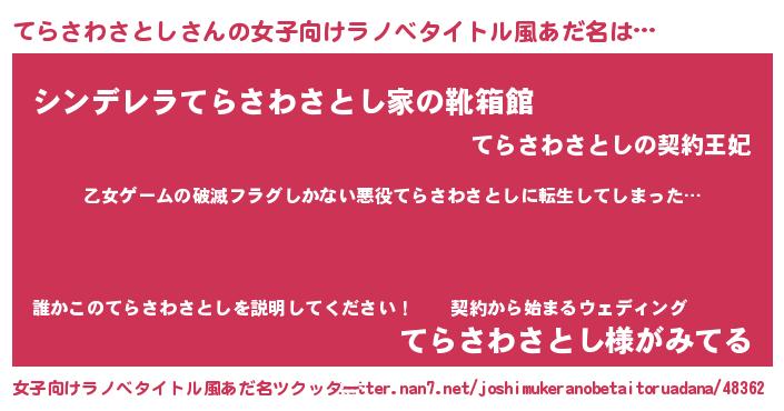 | 男性向けラノベタイトル風あだ名 | 『魔弾の王とてらさわさとし』 |