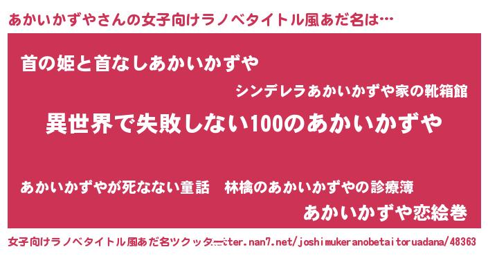 | 男性向けラノベタイトル風あだ名 | 『あかいかずやという概念が存在しない退屈な世界 』 |