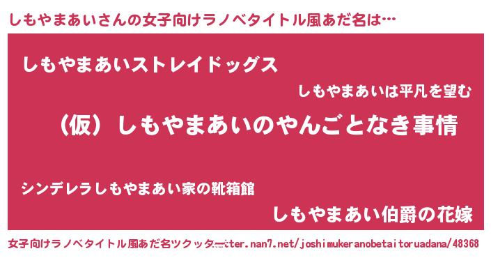 | 男性向けラノベタイトル風あだ名 | 『しもやまあいの憂鬱』 |