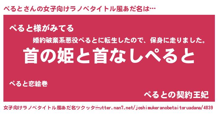 | 意味不明あだ名 | 『とにかく怪しいぺると』 |