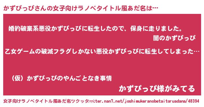 | 男性向けラノベタイトル風あだ名 | 『魔弾の王とかずぴっぴ』 |