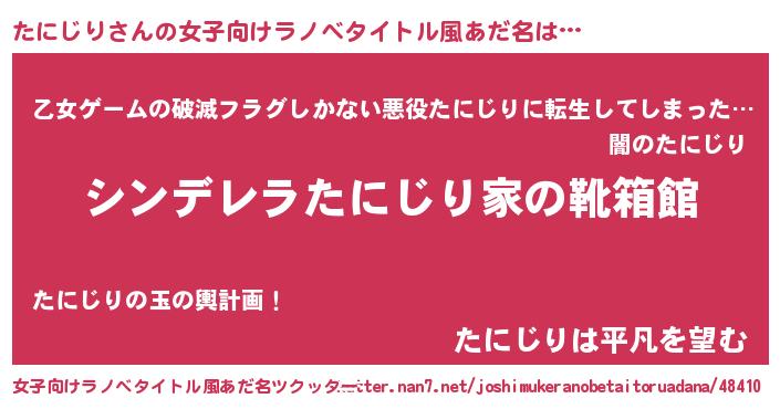 | 男性向けラノベタイトル風あだ名 | 『緋弾のタニジリ』『魔弾の王とたにじり』 |