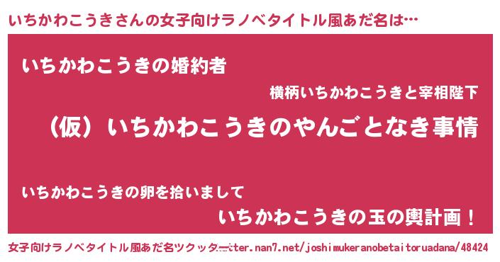 | 男性向けラノベタイトル風あだ名 | 『いちかわこうきの憂鬱』 |