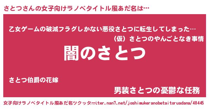 | 意味不明あだ名 | 『自称さとつ』『住所不定無職さとつ(93歳)』 |