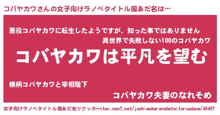 | 男性向けラノベタイトル風あだ名 | 『ダンジョンにコバヤカワを求めるのは間違っているだろうか』 |