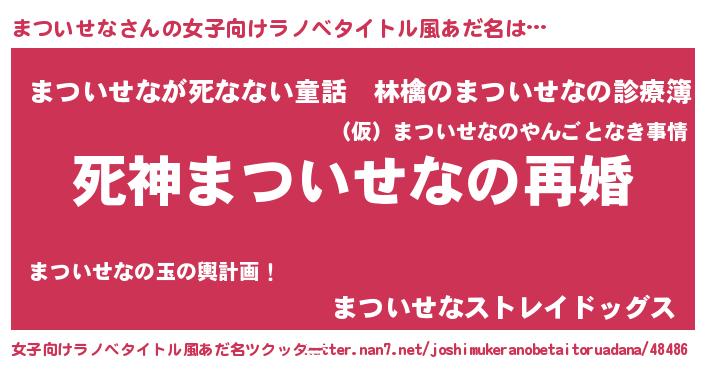 | 伝説のあだ名 | 『救世主となる錬金術士まついせな』 |