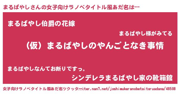 | 男性向けラノベタイトル風あだ名 | 『まるばやしの憂鬱』 |