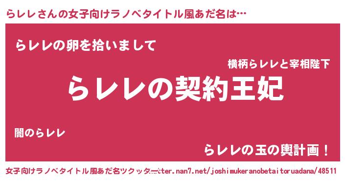 | ヒーロー風カッコイイあだ名 | 『ネオラレレ』『魔戒騎士ラレ』 |
