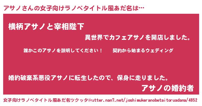 | 男性向けラノベタイトル風あだ名 | 『アサノアートオンライン』 |