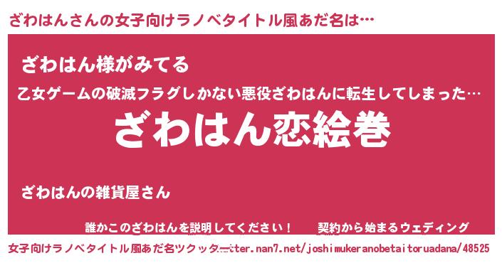 | 男性向けラノベタイトル風あだ名 | 『おまえをオタクにしてやるから、俺をざわはんにしてくれ! 』 |