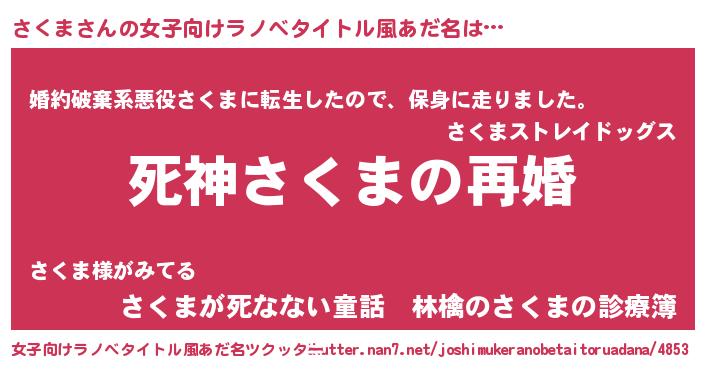 | 男性向けラノベタイトル風あだ名 | 『ノーゲーム・ノーサクマ』 |
