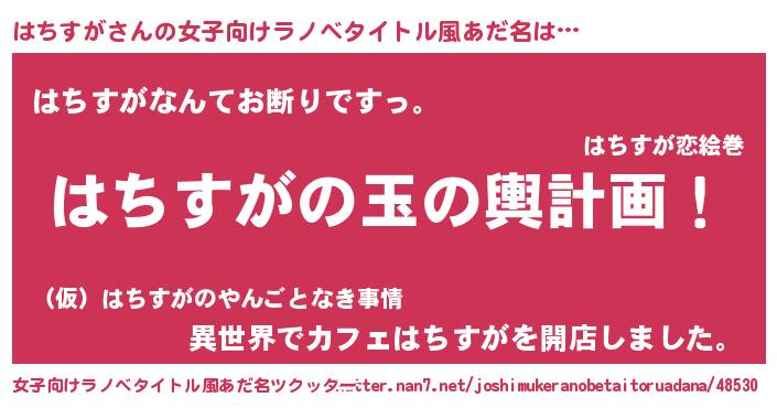 | 男性向けラノベタイトル風あだ名 | 『転生したらはちすがだった件』 |