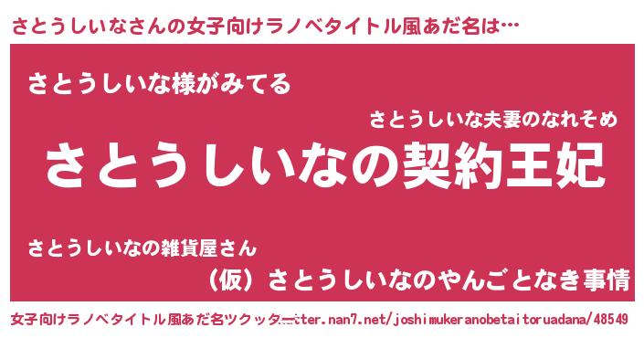 | 男性向けラノベタイトル風あだ名 | 『さとうしいなという概念が存在しない退屈な世界 』 |