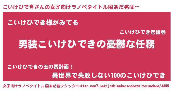 | 男性向けラノベタイトル風あだ名 | 『うちのこいけひできが世界を掌握している!』 |