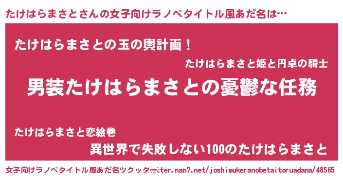 | ヘコむあだ名 | 『たけはらまさと(小並感)』『たけっふぃ~』 |