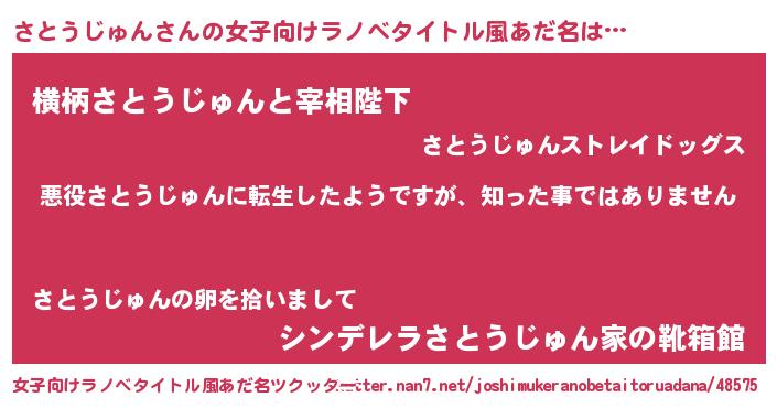 | 男性向けラノベタイトル風あだ名 | 『この素晴らしい世界にさとうじゅんを!』 |