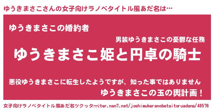 | 男性向けラノベタイトル風あだ名 | 『ユウキマサコアートオンライン』 |