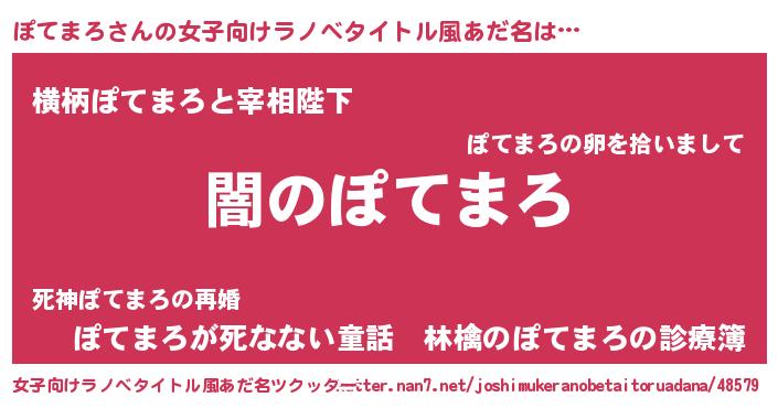 | 男性向けラノベタイトル風あだ名 | 『Re:ぽてまろから始める異世界生活』 |