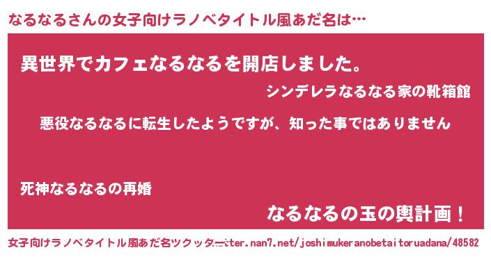 | 胡散臭い通販商品みたいなあだ名 | 『あなたにだけ特別に提供する100年もののヴィンテージワイン…その名も「なるなる」』 |