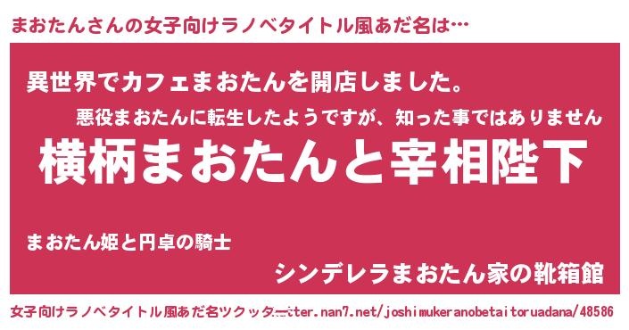 | 男性向けラノベタイトル風あだ名 | 『まおたんに滅ぼされるだけの簡単なお仕事です』 |