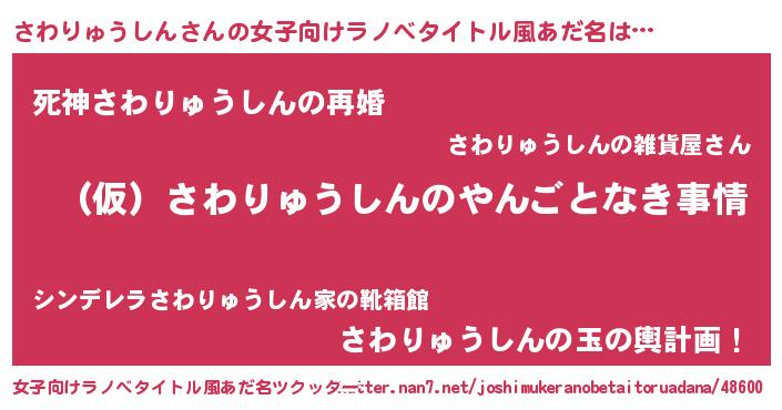 | 男性向けラノベタイトル風あだ名 | 『さわりゅうしんの憂鬱』 |