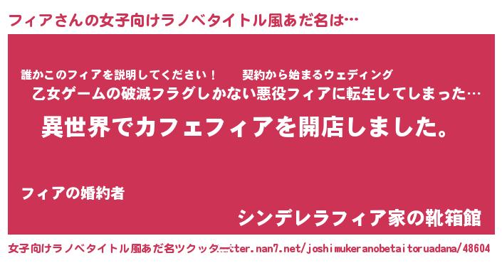 | 男性向けラノベタイトル風あだ名 | 『誰もが恐れるあのフィアが、ぼくの専属メイドになるようです。』 |
