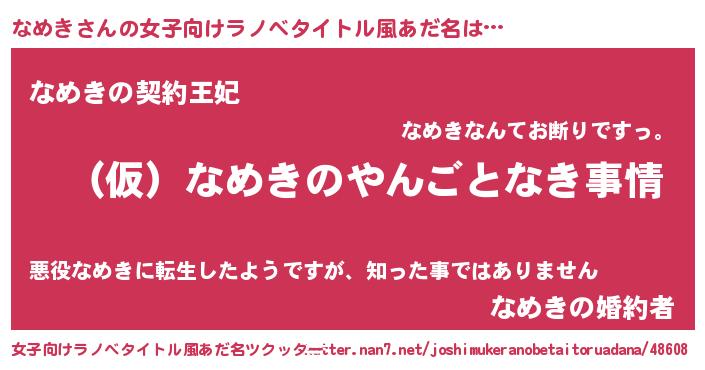 | 男性向けラノベタイトル風あだ名 | 『なめきの憂鬱』『魔法科高校のなめき』 |