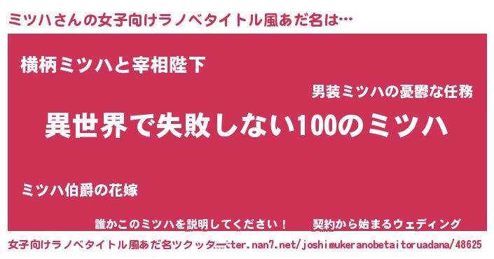 | 男性向けラノベタイトル風あだ名 | 『ミツハという概念が存在しない退屈な世界 』 |