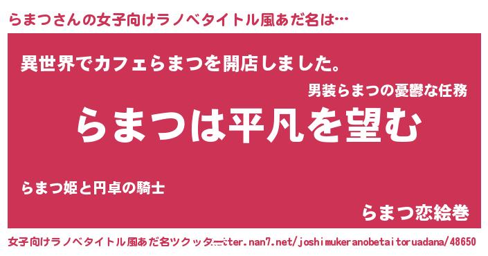 | 胡散臭い通販商品みたいなあだ名 | 『信頼と実績のサプリメント…その名も「らまつ」』 |