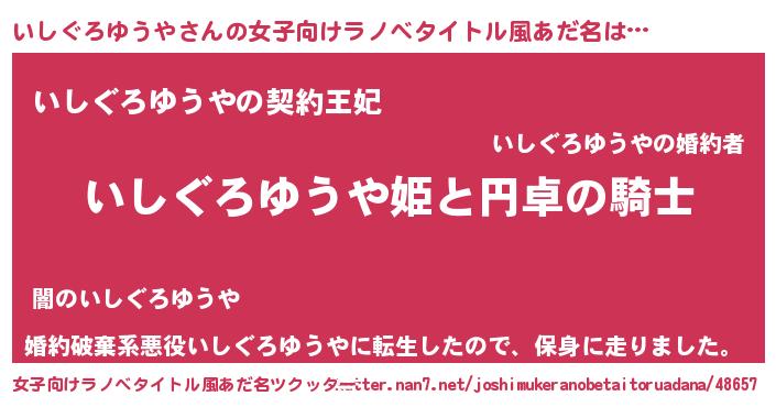 | 男性向けラノベタイトル風あだ名 | 『イシグロユウヤアートオンライン』 |