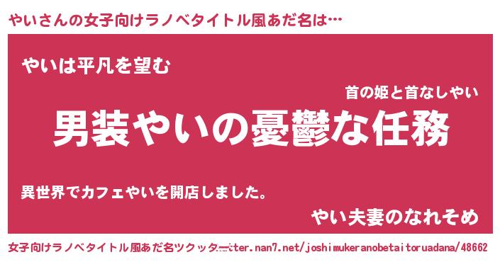 | 男性向けラノベタイトル風あだ名 | 『うちのやいが世界を掌握している!』 |