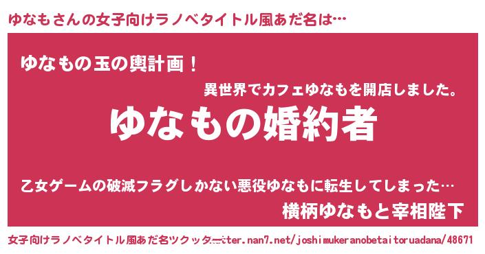 | 意味不明あだ名 | 『ゆなもフォーエバー』『永久保存ゆなも』 |