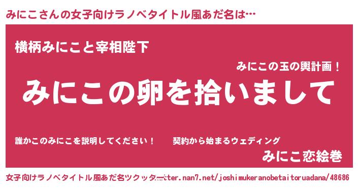 | 男性向けラノベタイトル風あだ名 | 『みにこの嫁は女の子じゃないと思った?』 |
