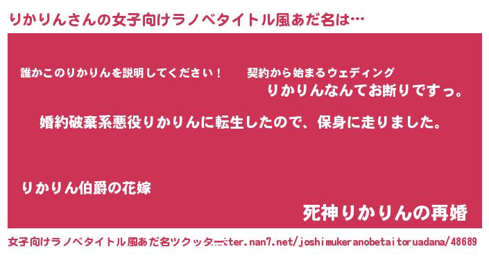 | 胡散臭い通販商品みたいなあだ名 | 『必ず成功するブレスレット…その名も「りかりん」』 |