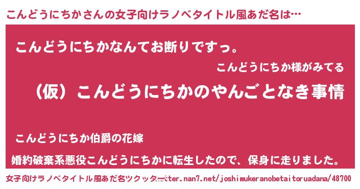 | 胡散臭い通販商品みたいなあだ名 | 『必ず成功するブレスレット…その名も「こんどうにちか」』 |