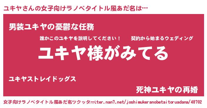 | ヒーロー風カッコイイあだ名 | 『炎刃騎士ユキ』『愛の使者ユキヤ』 |