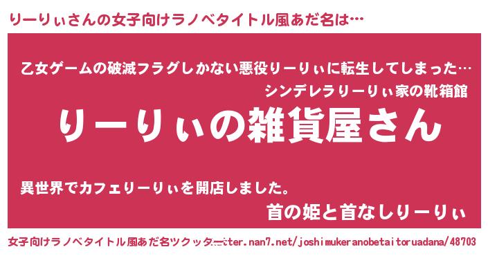 | 胡散臭い通販商品みたいなあだ名 | 『幸せが訪れる高級そうな絵画…その名も「りーりぃ」』 |