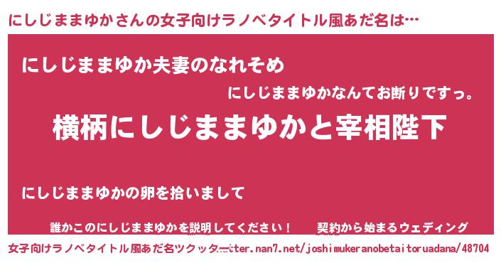 | 男性向けラノベタイトル風あだ名 | 『にしじままゆかに滅ぼされるだけの簡単なお仕事です』 |