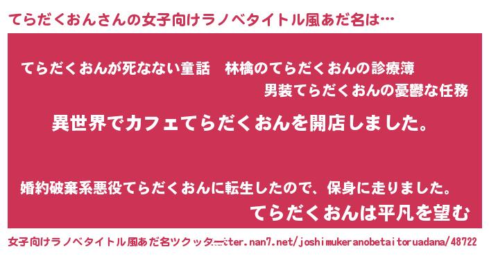 | 男性向けラノベタイトル風あだ名 | 『誰もが恐れるあのてらだくおんが、ぼくの専属メイドになるようです。』 |