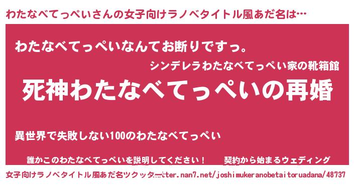 | 男性向けラノベタイトル風あだ名 | 『ノーゲーム・ノーワタナベテッペイ』 |