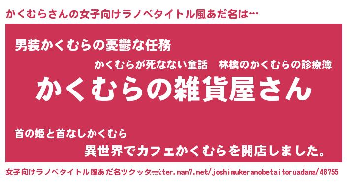 | 男性向けラノベタイトル風あだ名 | 『やはりかくむらの青春ラブコメはまちがっている 』 |