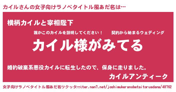 | ヒーロー風カッコイイあだ名 | 『炎刃騎士カイ』『サイバー戦士カイル』 |