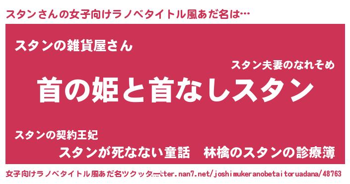 | 男性向けラノベタイトル風あだ名 | 『はたらくスタンさま!』 |