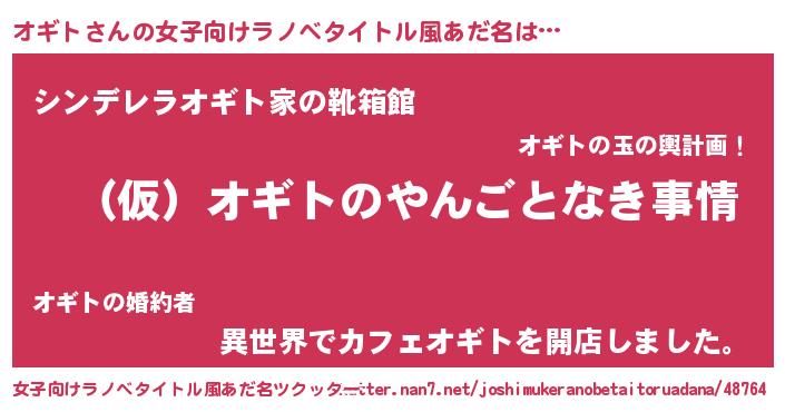 | 胡散臭い通販商品みたいなあだ名 | 『必ず成功するブレスレット…その名も「オギト」』 |