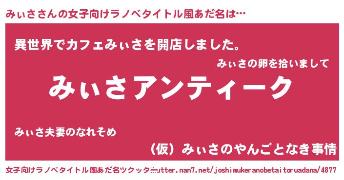 | 意味不明あだ名 | 『自称みぃさ』『永久保存みぃさ』 |